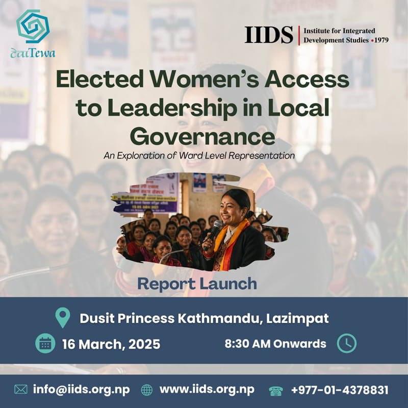 The Institute for Integrated Development Studies (IIDS) and Tewa jointly launched a pivotal report examining women’s participation in Nepali politics. The event featured esteemed panelists including Hon. Dr. Minendra Rijal, Sharu Joshi Shrestha, Mamata Mahato, and Hon. Sumana Shrestha.
