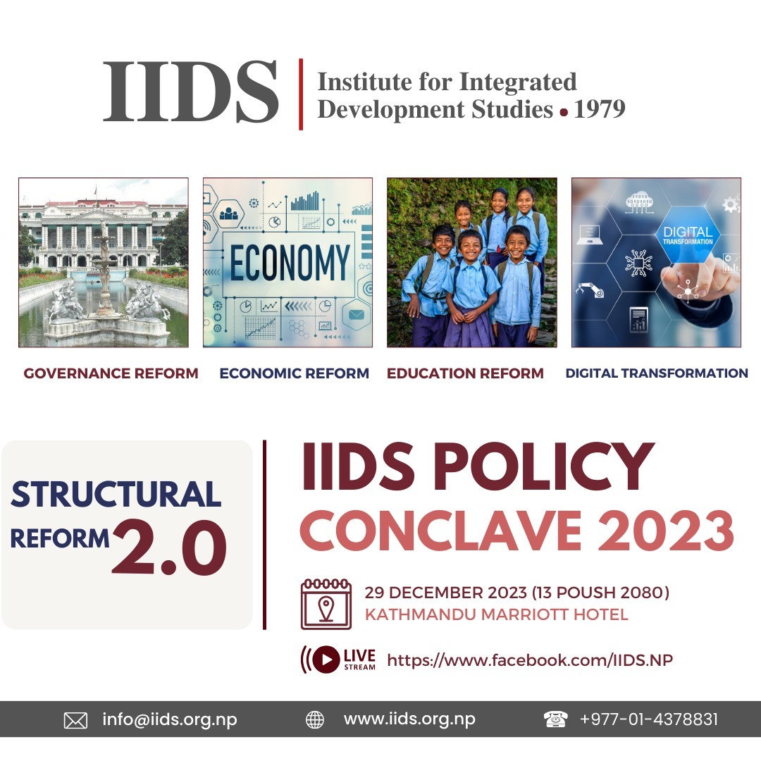 Institute for Integrated Development Studies (IIDS) organized the first ever Policy Conclave on 29th December 2023 at Marriott Hotel, Kathmandu. The theme of the Conclave was Structural Reform 2.0.
