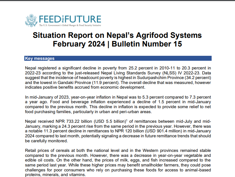 Situation Report on Nepal’s Agrifood Systems March 2024 | Bulletin Number 15 – English